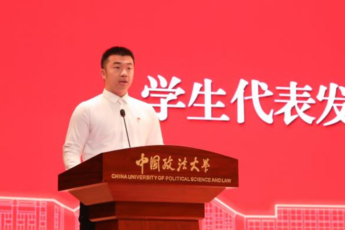 学生代表、民商经济法学院2205班师延明在仪式上表示,作为1502新时代青年知行社的一员,将时刻用实际行动践行习近平总书记的殷殷嘱托。他号召同学们用一生来践行跟党走的理想追求,在全面建设社会主义现代化国家的新征程上,书写属于法大青年的忠诚担当。