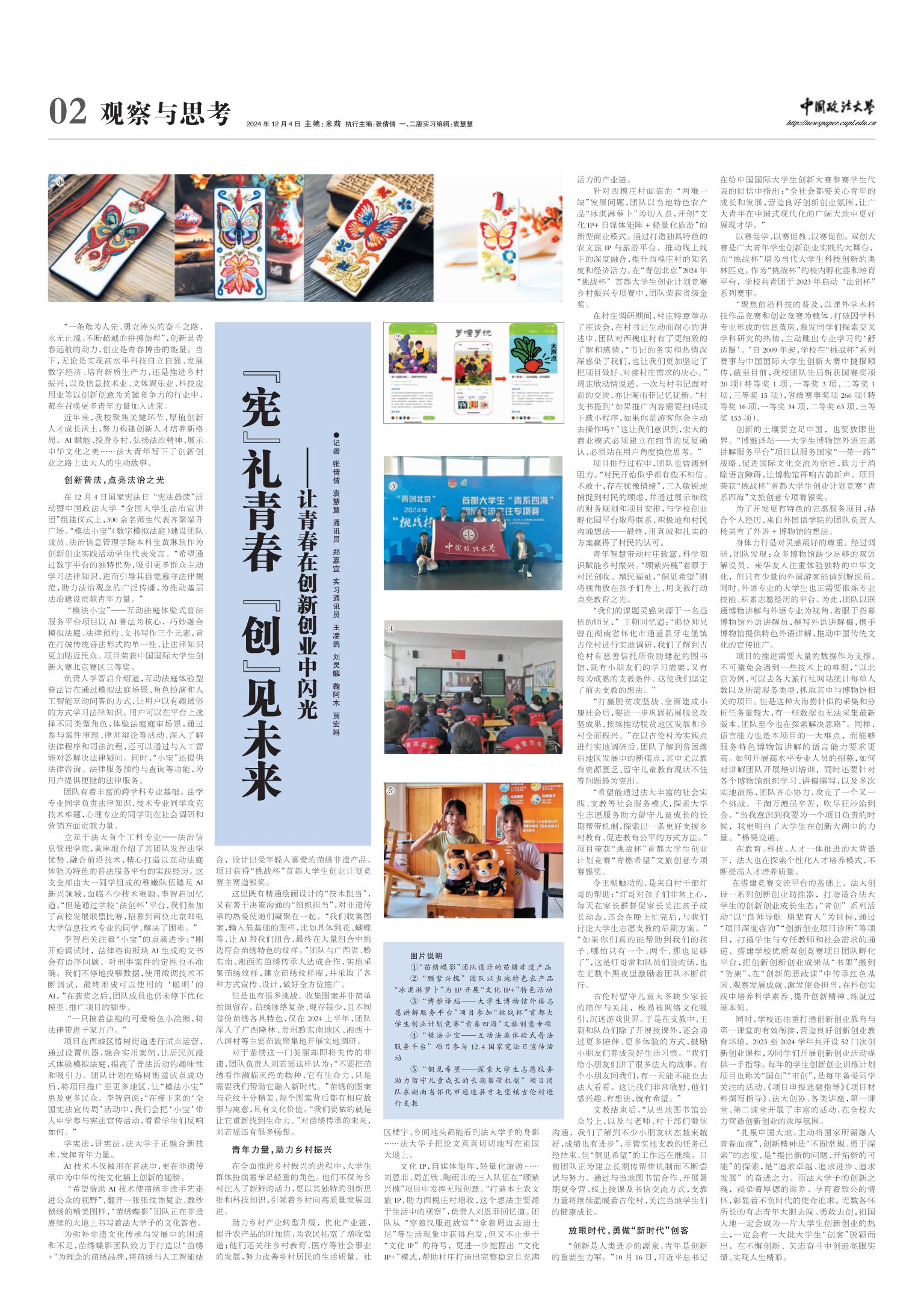 近年来,我校聚焦关键环节,厚植创新人才成长沃土,努力构建创新人才培养新格局。AI赋能、投身乡村,弘扬法治精神、展示中华文化之美……法大青年写下了创新创业之路上法大人的生动故事。